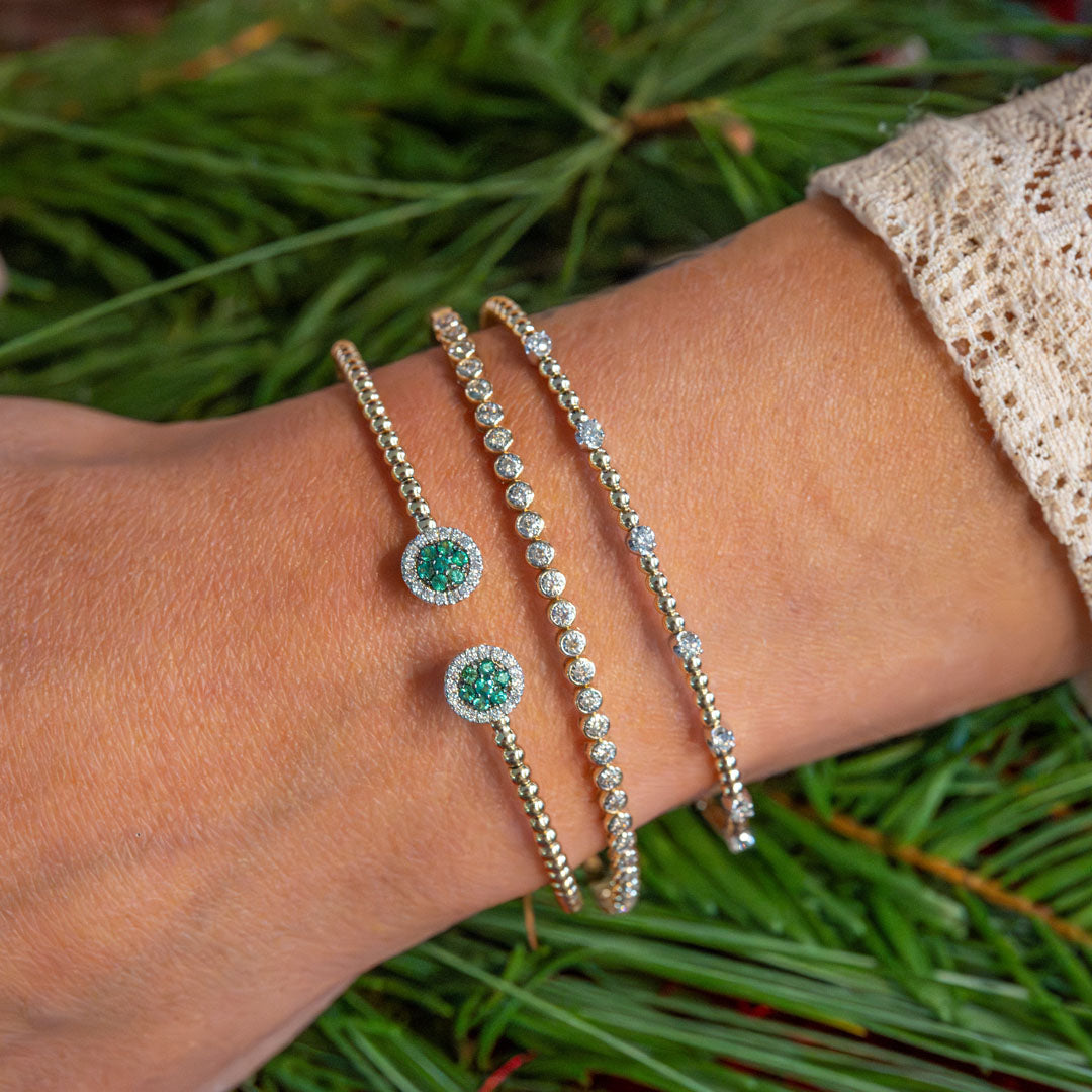 Our bracelet collection features elegant and versatile designs to suit every occasion—from classic diamond tennis bracelets to vibrant gemstone bangles and sleek gold or sterling silver styles. Whether you're stacking for a trend-forward look or selecting a meaningful gift, each bracelet is crafted with lasting quality and attention to detail. Explore styles that range from delicate chains to bold cuffs, with options to personalize or match your favorite pieces.