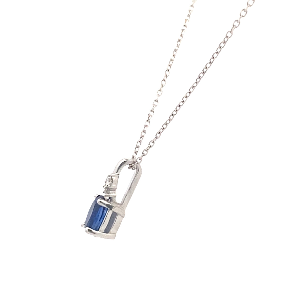 Sapphire and Diamond Pendant in 14K White Gold with 18" Chain by Beeghly & Co. Creations